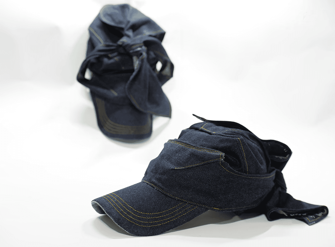 Flux Hat was designed in two size ranges (S–M and L–XL). Adjustable ties allow the wearer to modify fit within each range, emphasizing flexibility, adaptability, and constant change.