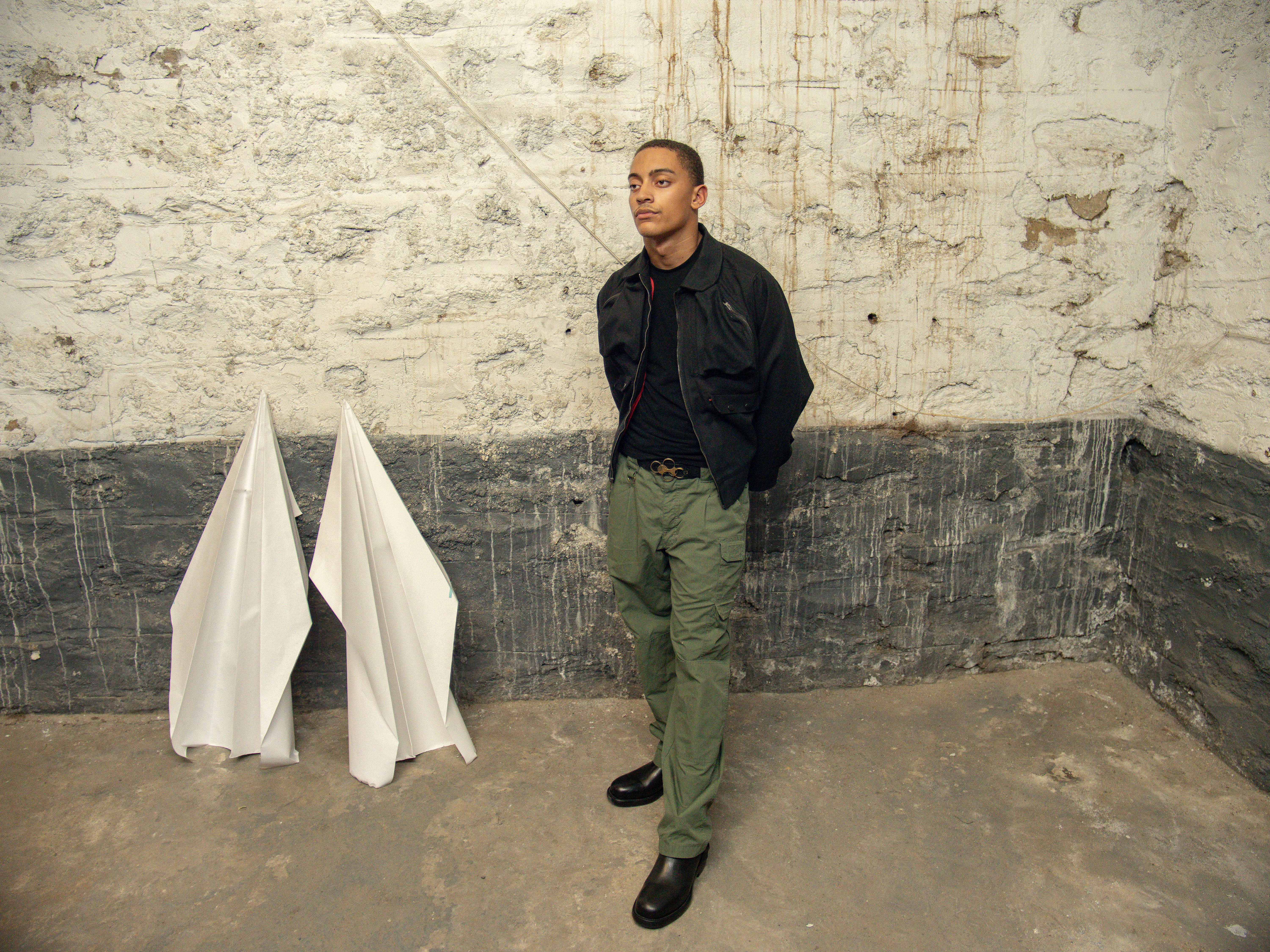 Aún Jacket explores latent energy within stillness, drawing from principles of kinetic energy and the transformation of a paper airplane, from a flat sheet into an object in motion. The garment positions fabric as a metaphorical “paper,” shaped through folds and structure to suggest lift, movement, and flight. Guided by the idea of finding your own paper, the jacket reflects how potential is not inherent to a material itself, but revealed through interaction, intention, and change.