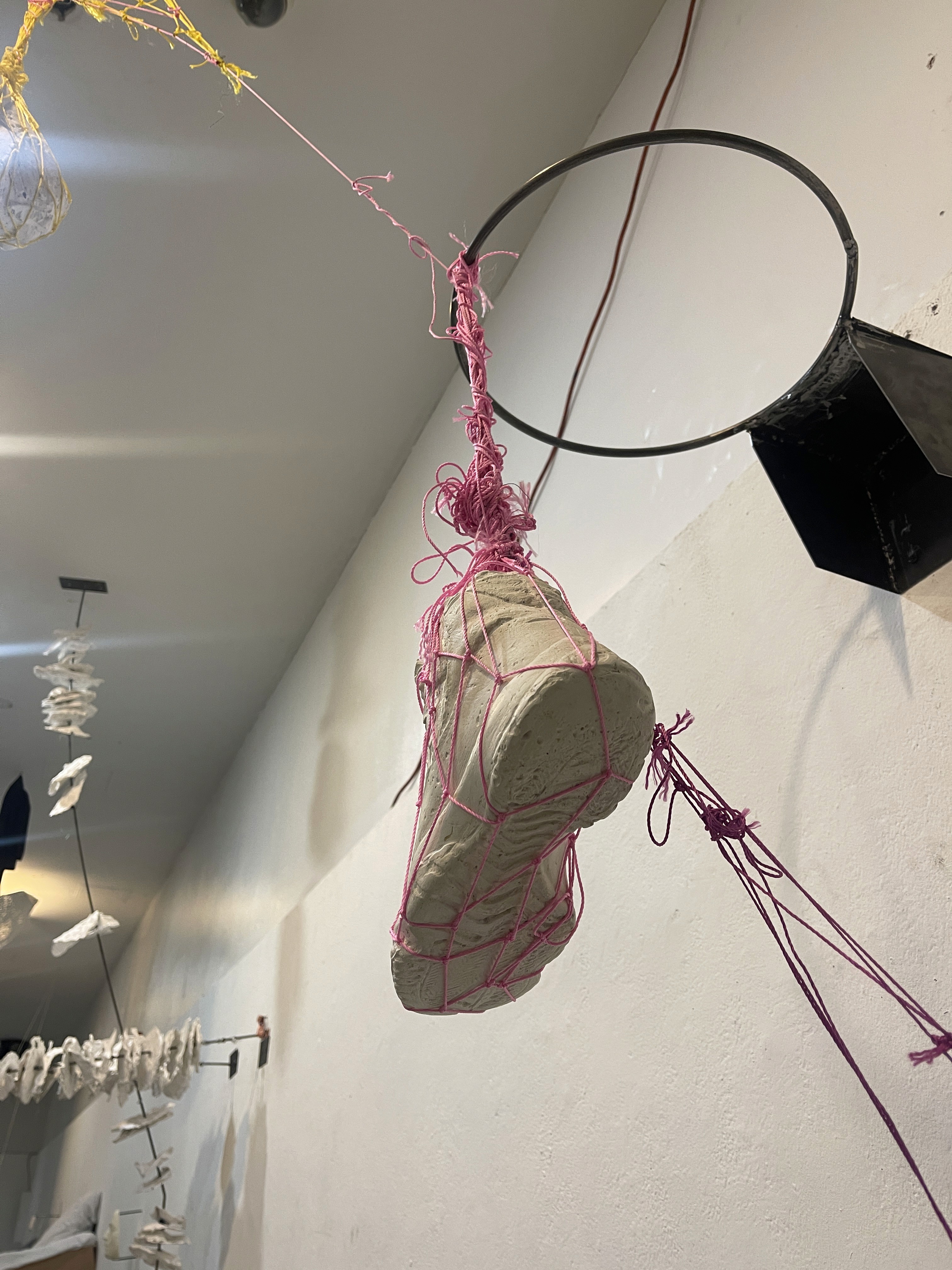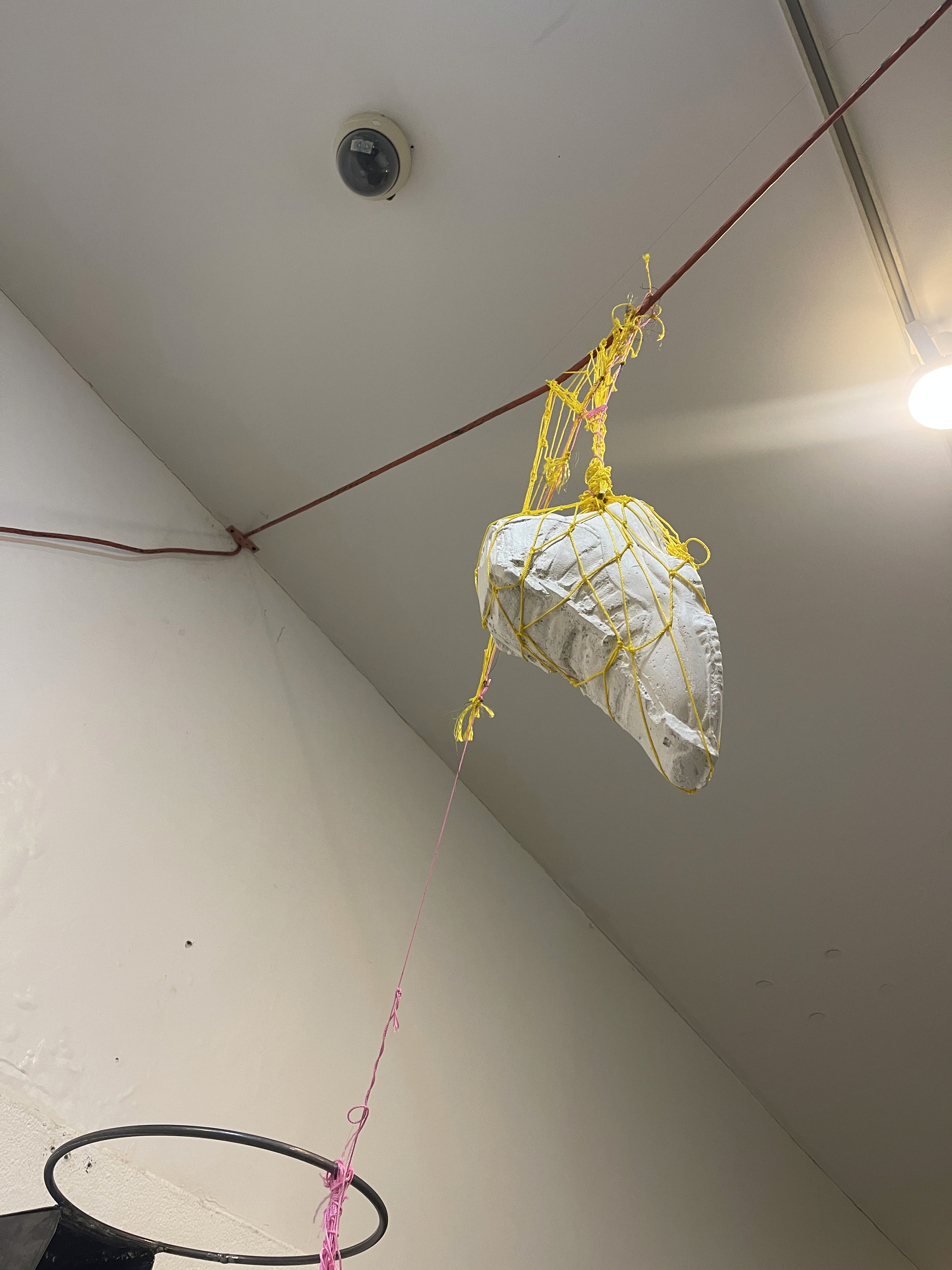 Materials____3/8" steel rods, 16-gauge steel plate, plaster, polypropylene yarn construction rope